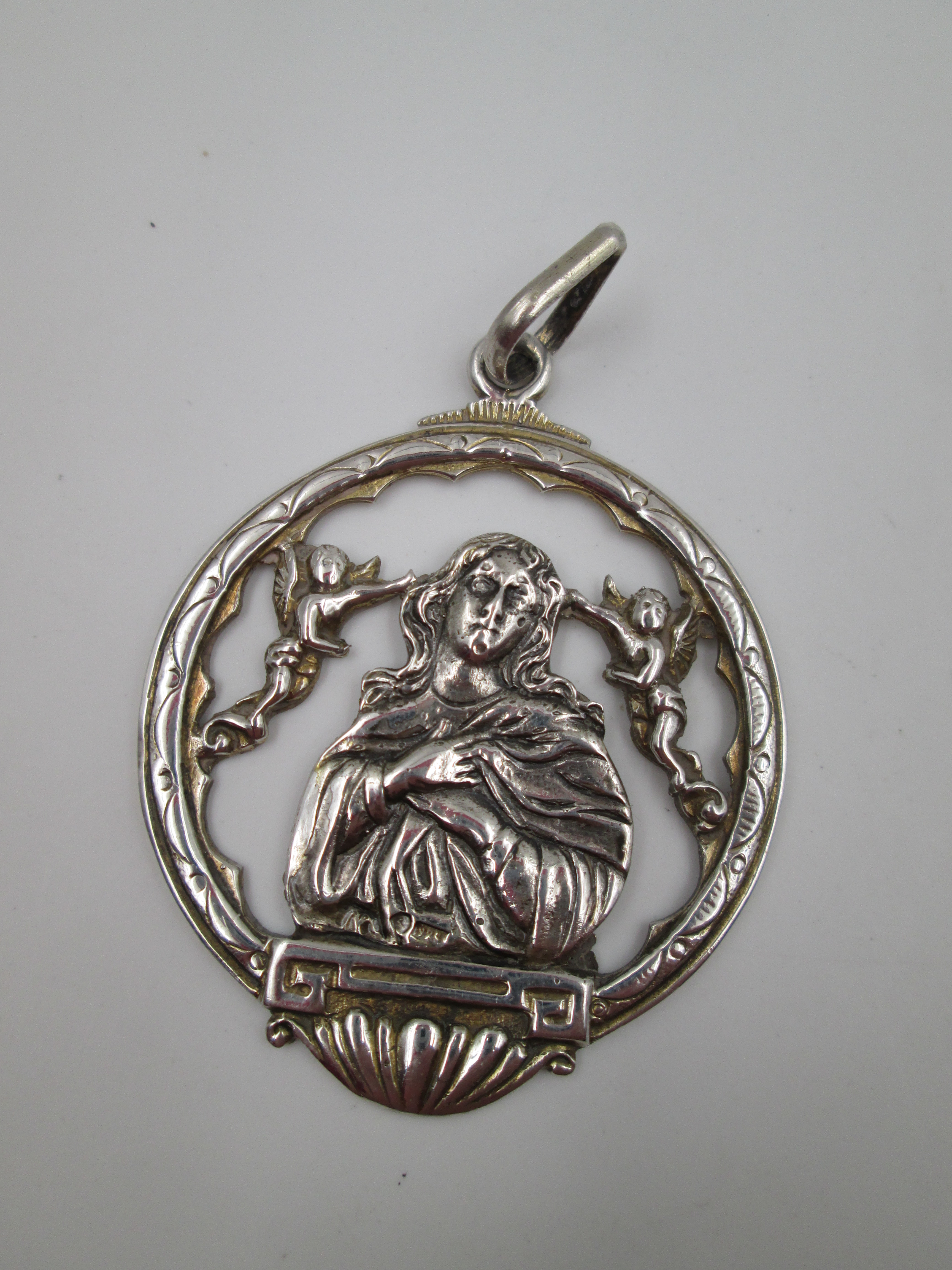 Immaculate Conception and cherubs openwork medal. Sterling silver. Spain. 1970's