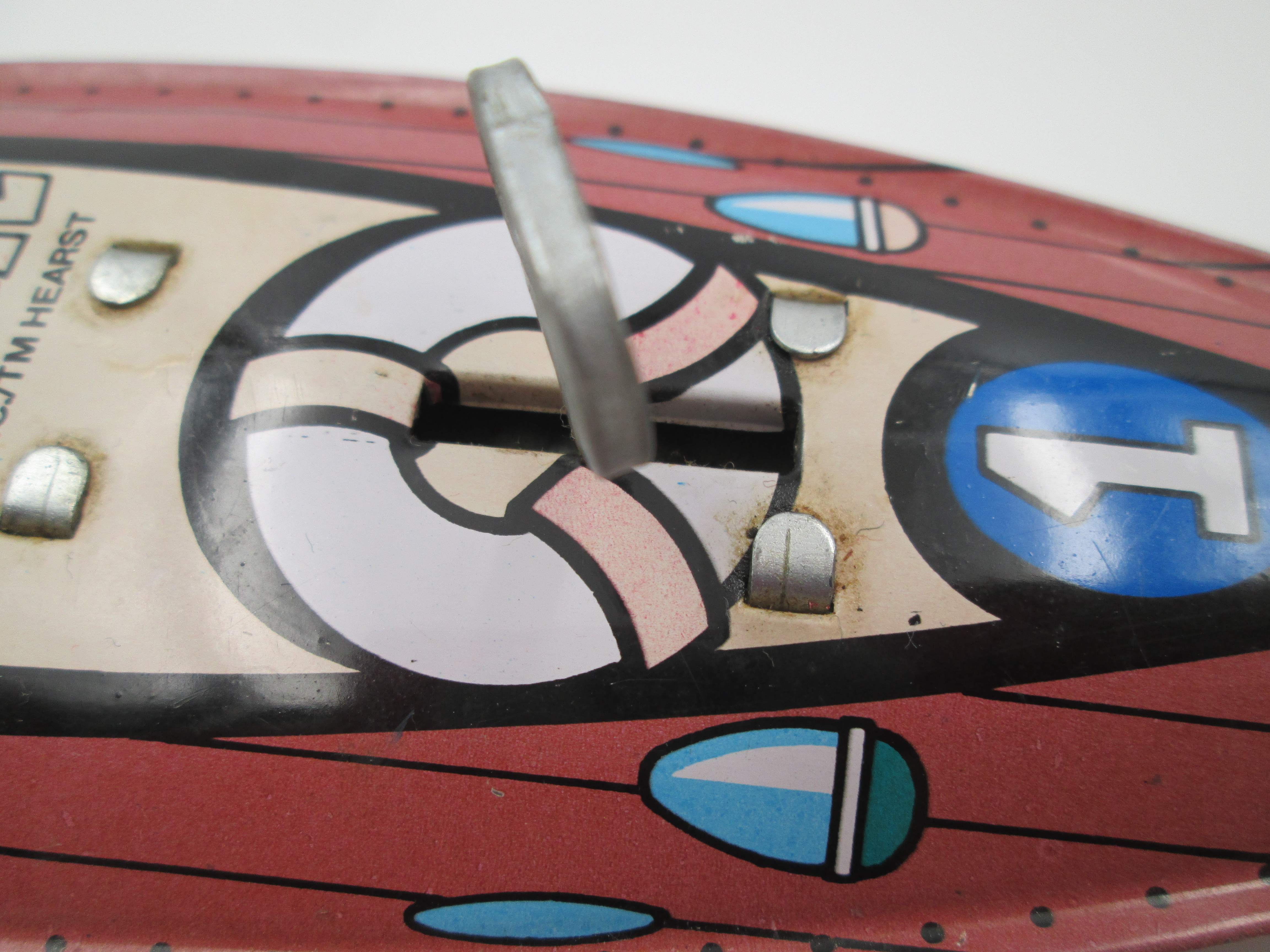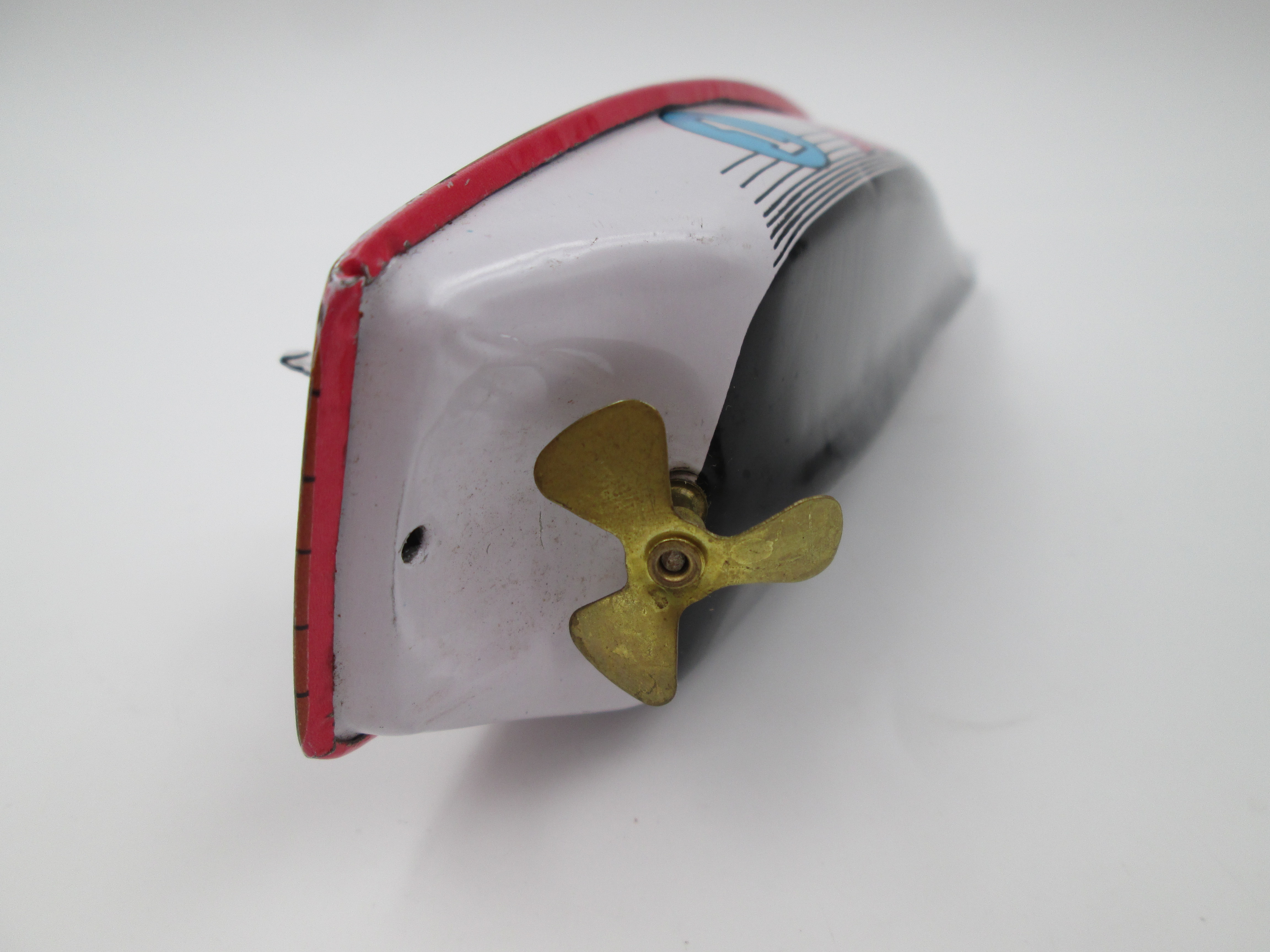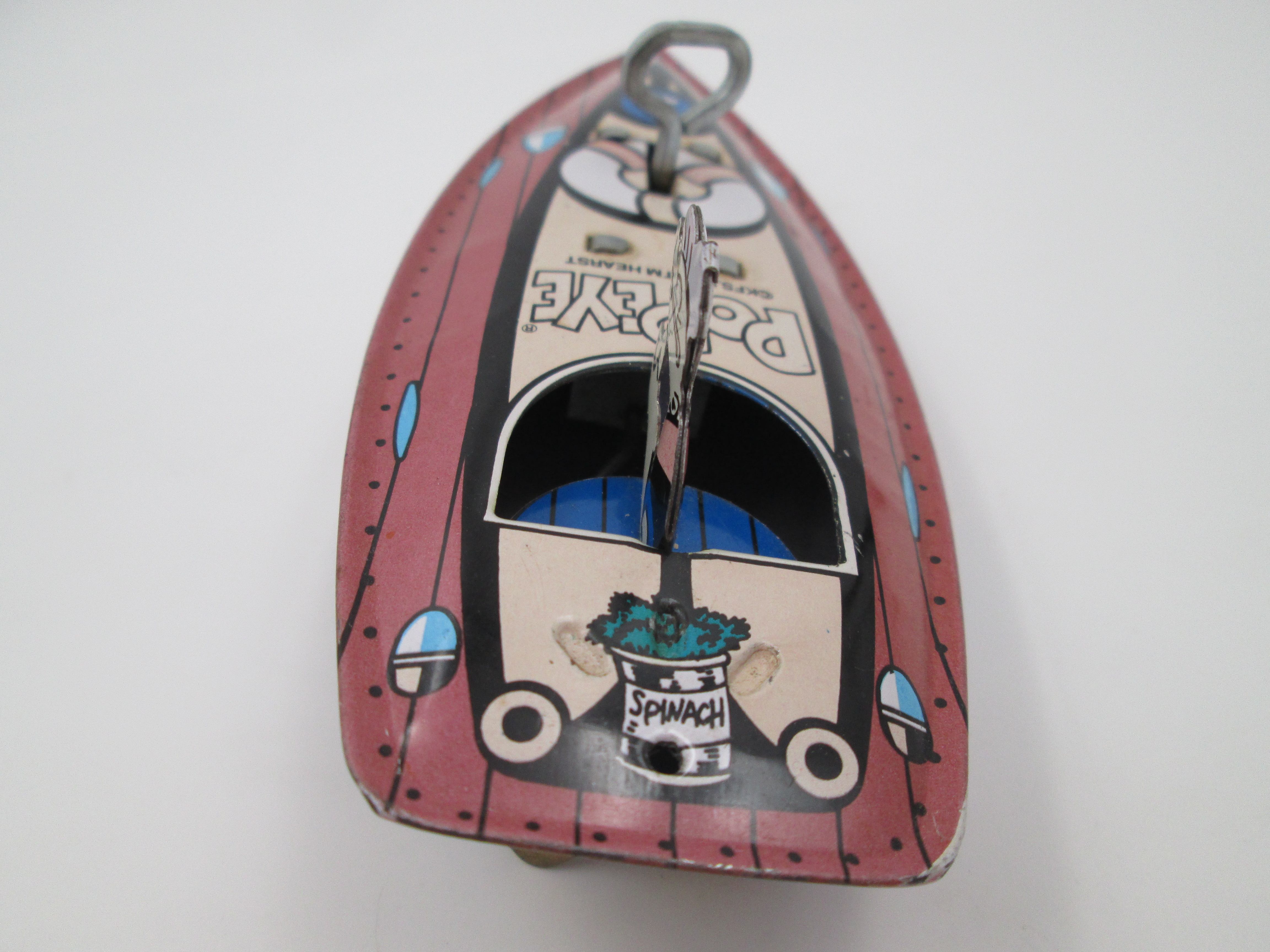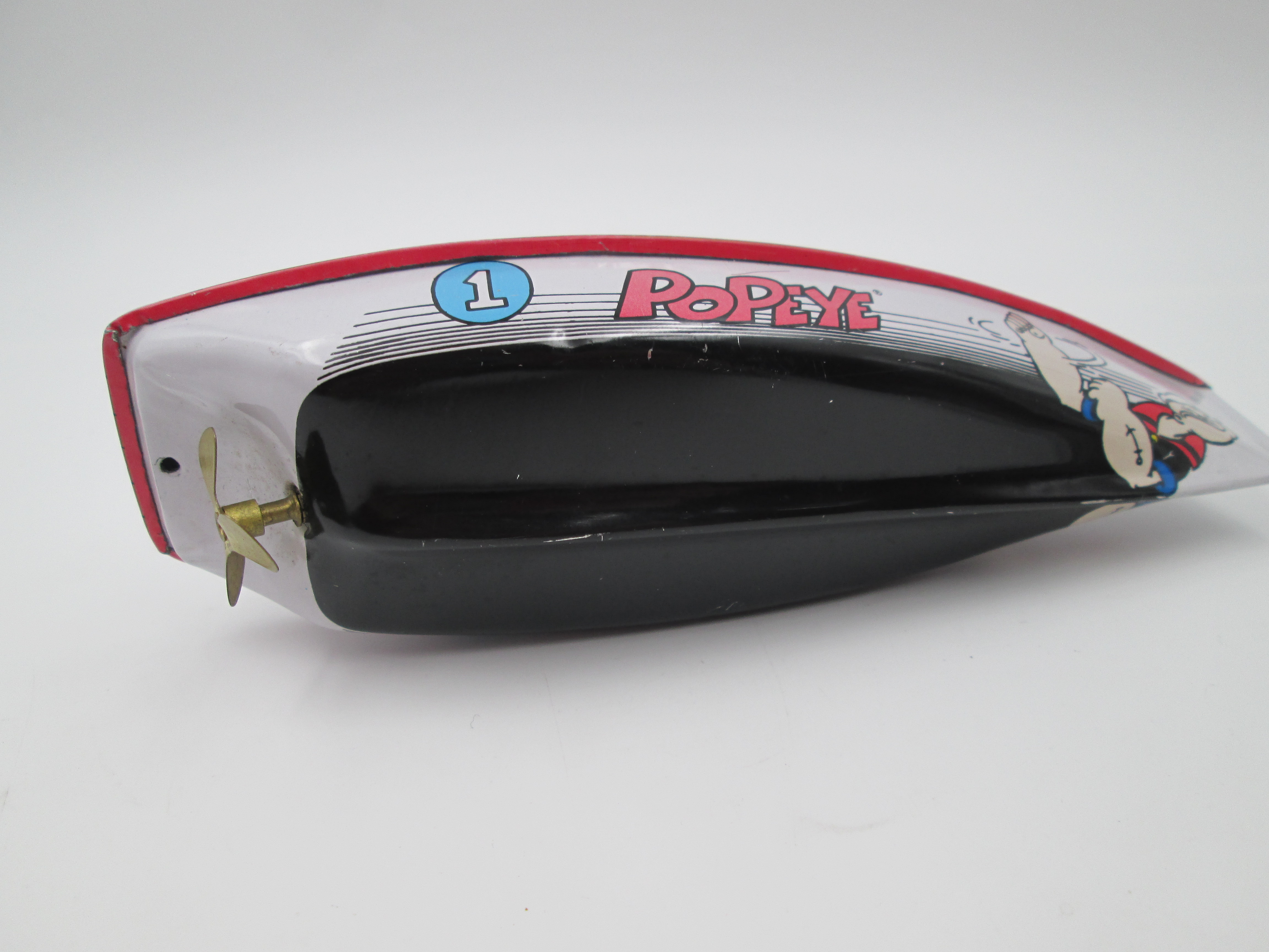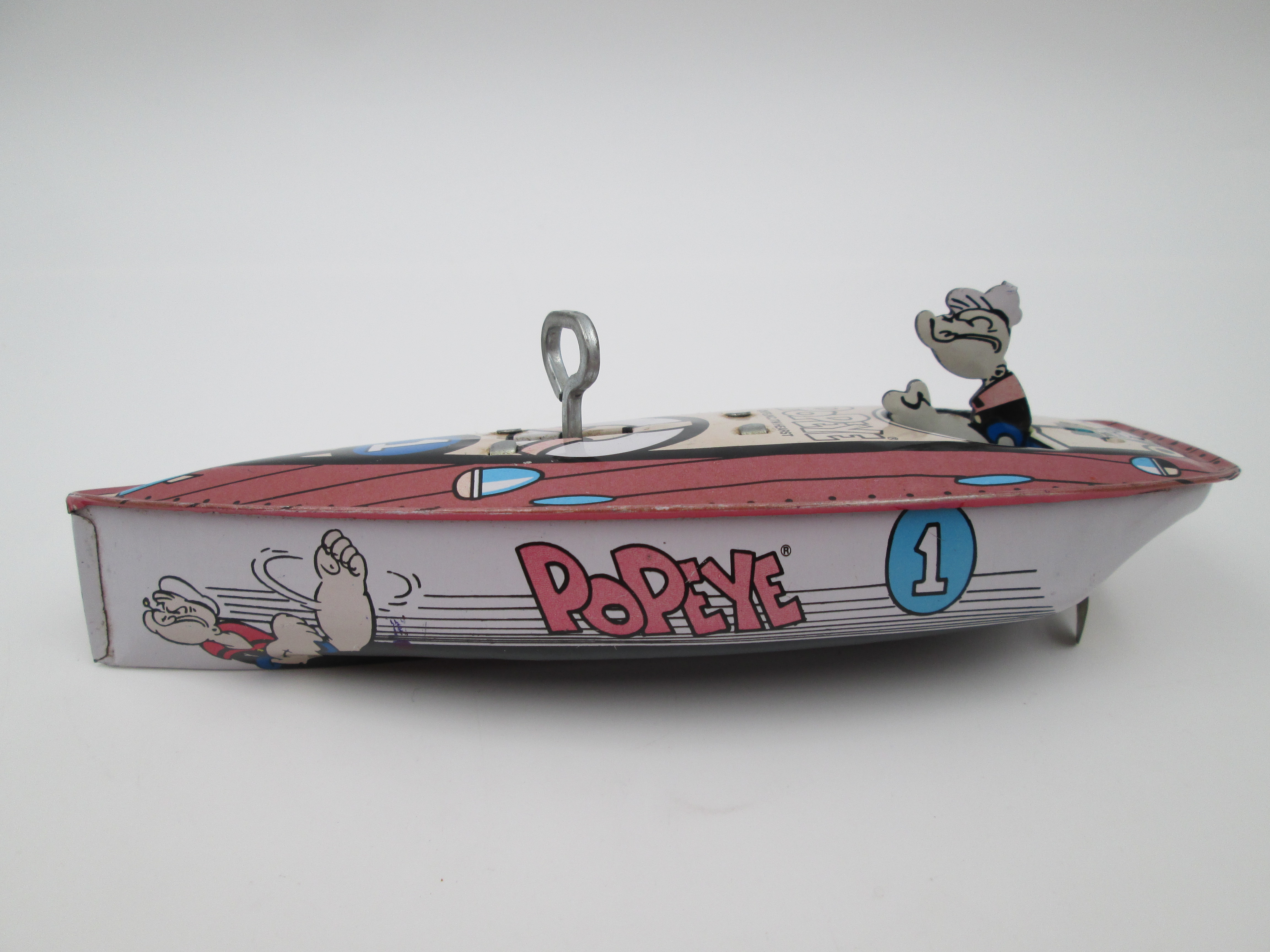 Popeye Speedboat. Lithographed tinplate. Wind-up mechanism. Schylling. USA. 1996